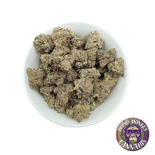 Its chunky, frosty buds shimmer with pink and purple tones, releasing a sweet bouquet of berries, vanilla, and subtle earthiness. The flavor mirrors the aroma—smooth, sugary berry notes with a creamy, mellow finish that lingers pleasantly.
